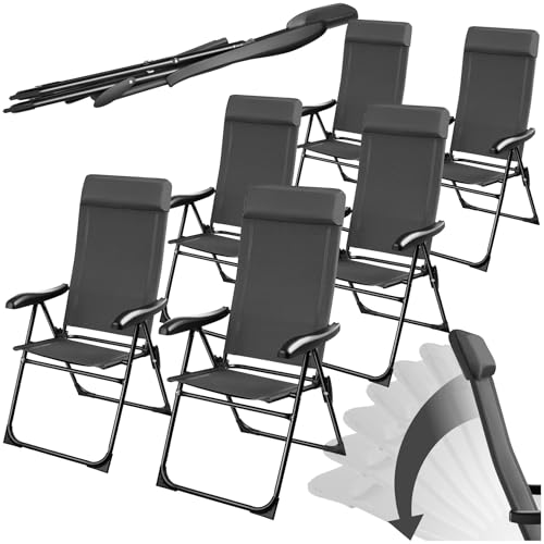 TecTake® Lot de 6 Chaise Pliante Camping Fauteuil Pliable Chaise de Plage Ultra léger en Aluminium avec Dossier inclinable & appuie-tête, Idéal Voyages, Pêche, Festival, Camping, Plage, Jardin