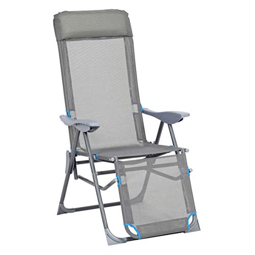 greemotion Chaise Longue Pliante Lido, Fauteuil de Jardin Inclinable avec Cadre en Aluminium, Chaise Camping Dossier Réglable en 5 Positions, Gris/Bleu