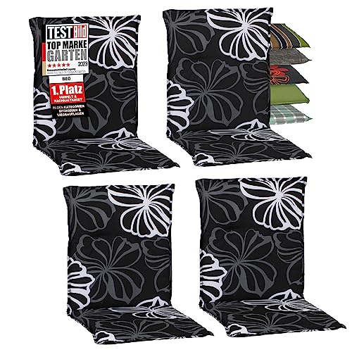 Beo Turin Lot de 4 coussins pour chaise de jardin, lavables, fabriqués en UE, de qualité supérieure, résistants aux UV et respirants, pour fauteuil à dossier bas, avec rayures en bleu et gris