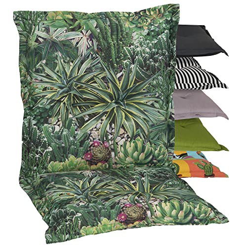 Beo Nice Coussin pour Chaise de Jardin, Lavable, fabriqué en UE, de qualité supérieure, résistant aux UV, Respirant, pour Fauteuil à Dossier Bas, avec Motif de Cactus en Vert