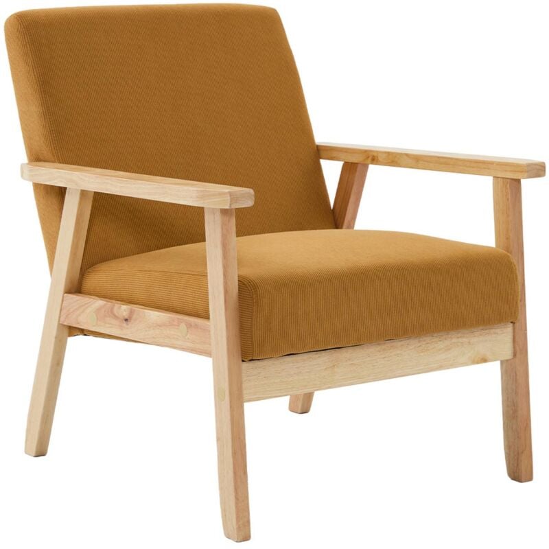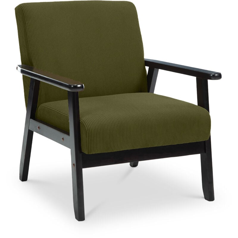 Fauteuil en bois Vintage - Sicaan - ERIK - Tissu Velours côtelé - L.65 x P.75 x H.76 cm - Vert foncé