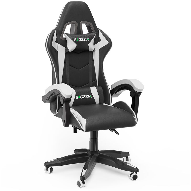 Bigzzia - Fauteuil gamer ergonomique Fauteuil de Bureau - Avec appui-tête, Support lombaire et Repose-pieds - Hauteur Réglable - Noir et Blanc