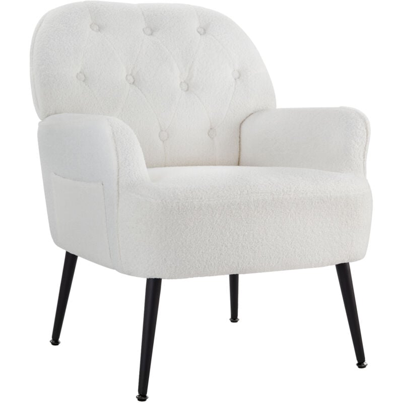 IWMH Fauteuil Lounge, Chaise avec Dossier en Peluche à Boutons, Canapé simple avec pieds en métal adapté au salon, chambre à coucher, bureau - Blanc