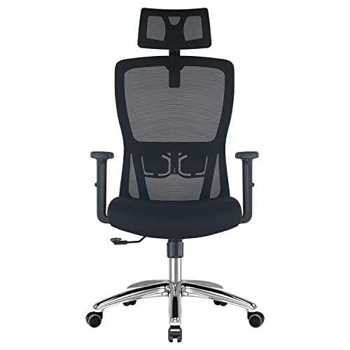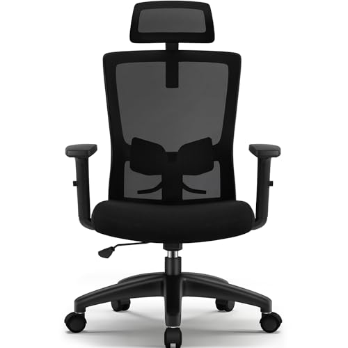 vounot® Chaise de Bureau Ergonomique Hauteur Ajustable avec Appuie-Tête et Accoudoir Réglables Fauteuil de Bureau Maille Respirante Dossier Coussin Confortable Noir