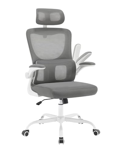 WOLTU Chaise Bureau Ergonomique, Fauteuil de Bureau avec Appuie-Tête et Accoudoir Réglables, en Maille avec Support Lombaire en Forme de C, Gris