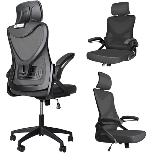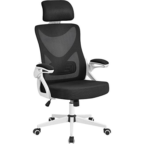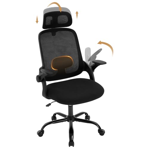 Youhauchair Chaise Bureau, Fauteuil de Bureau avec Accoudoirs Rabattables, Chaise de Bureau Ergonomique Confortable avec Soutien Lombaire, Noir