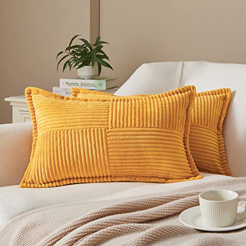 Topfinel Housse de coussin 30x50 Jaune Rectangulaire Décoration Salon Chambre Enfant Lot de 2 Taie oreiller Côtelé en Velours Doux de Couleur Uni pour Canape Chaise Fauteuil de Bureau