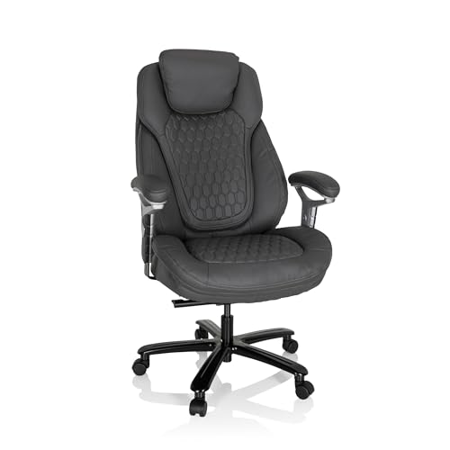 hjh OFFICE 738126 PULLMANN Fauteuil de Bureau en Cuir synthétique rembourré et réglable en Hauteur Charge maximale 180 kg Gris