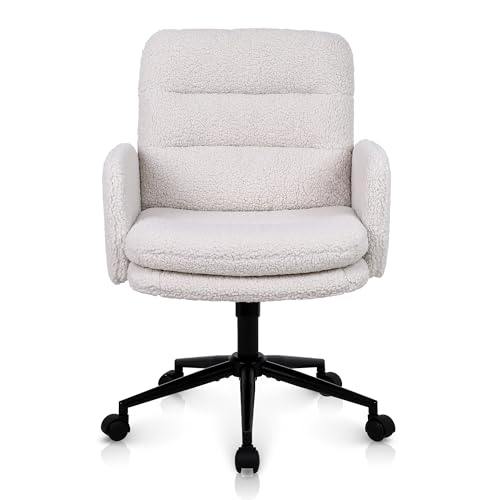Youhauchair Chaise Bureau, Fauteuil de Bureau en Fausse Fourrure à Hauteur Réglable, Chaise Coiffeuse Confortable en Cachemire, Ergonomique pour la Maison et la Chambre, Crème