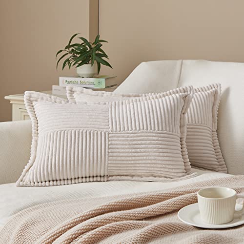 Topfinel Housse coussin 30x50 Rectangulaire Crème Lot de 2 housses de coussins Decoratives Canapé Chaise Salon Maison Fauteuil relax Bureau Enfant Coussins Côtelé en Velours Aesthetic Scandinave