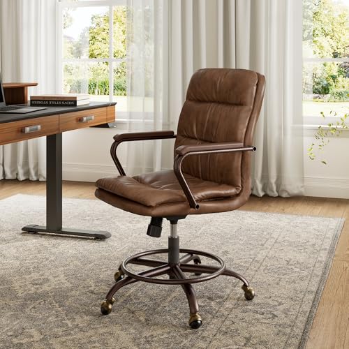 EUREKA ERGONOMIC Chaise de Bureau Pivotante, Style Médiéval Rétro Moderne Fauteuil de Bureau en Cuir PU, Fauteuil en Hauteur Réglable, pour Office/Salon/Chambre, Capacité 125 KG - Marron