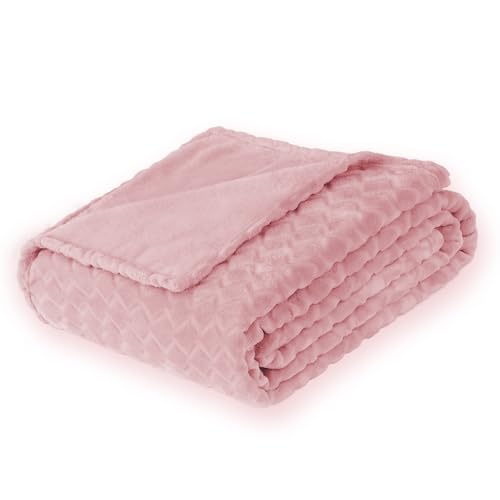FY FIBER HOUSE Couverture polaire douillette avec la ligne serpent - Couverture extra douce et moelleuse - En microfibre légère et confortable - Pour bureau, fauteuil et camping - 130 x 150 cm - Rose