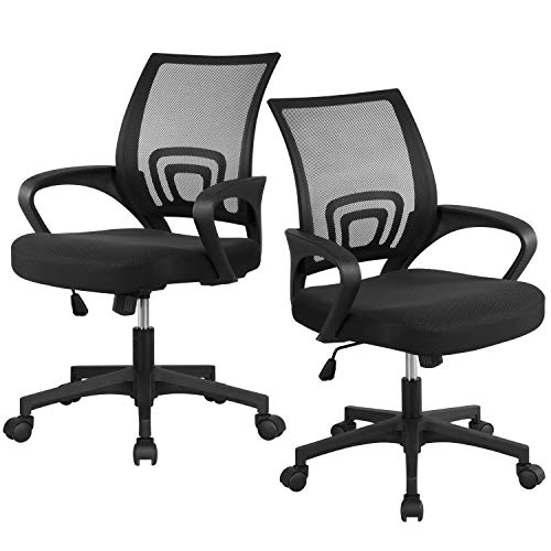 Yaheetech Lot de 2 Chaises Bureau à roulettes Pivotante Maille Fauteuil de Bureau Inclinables Ergonomique Noir avec Grand Siège 52,5 x 51 x 6,5 cm