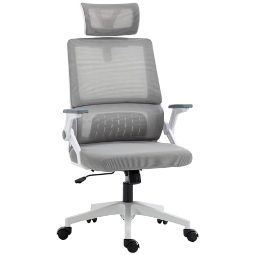Vinsetto Chaise de Bureau Fauteuil de Bureau Ergonomique avec Support Lombaire et appuie-tête réglable Tissu en Maille Respirante Gris