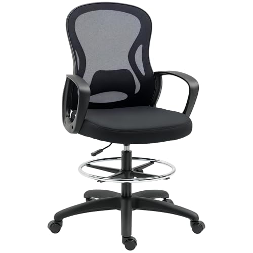Vinsetto Fauteuil de Bureau Chaise de Bureau Assise Haute réglable dim. 59L x 65l x 109-124H cm pivotant 360° Maille Respirante Noir