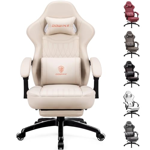 Dowinx Chaise de Jeu Ergonomique avec Coussin de Printemps et Support Lombaire de Massage, Fauteuil de Bureau en Cuir synthétique Blanc