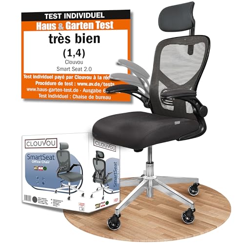 CLOUVOU Chaise Bureau Ergonomique SmartSeat [Élue N°1] Fauteuil de Bureau & Chaise Gaming | Charge maximale 150kg (Noir)