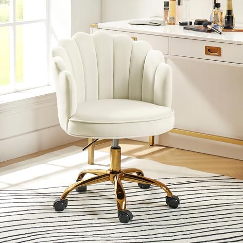 HULALA HOME Chaise de Bureau Moderne, Chaise Coquille Fauteuil de Bureau en Velours, Siège Roulante Pivotante à Dossier Bas Réglable, pour Salle de séjour, Salle d'Etude,Blanc