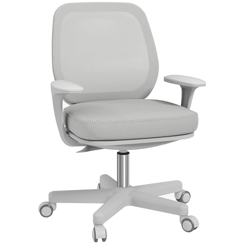 Vinsetto Fauteuil de Bureau, Chaise de Bureau Ergonomique en Maille avec Hauteur réglable, pivotante 360° et Dossier Moyen, pour Chambre, télétravail, Charge 120 Kg, Gris