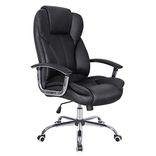 Yaheetech Chaise de Bureau Fauteuil Ergonomique en Similicuir Pivotante Dossier Inclinable à 360° avec Hauteur d'Assise Réglable pour la Maison/Le Bureau