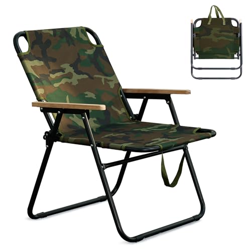 T-ZBDZ Chaise Camping Pliante Confortable, Chaise de Camping Pliable 200kg, Fauteuil Pliant Portable avec Accoudoirs, Fauteuil de Peche Chaises de Plage, pour Jardin Exterieur Terrasse,Camouflage