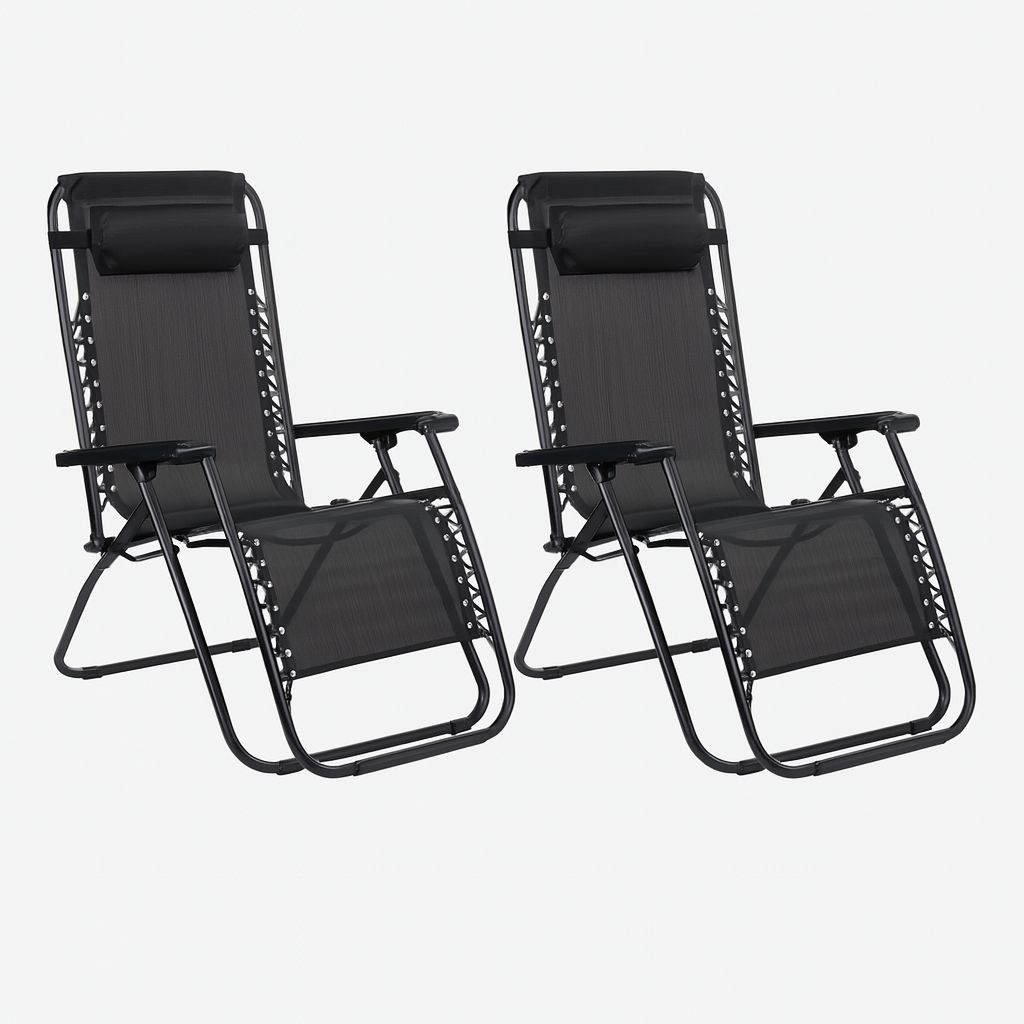 Lifetime Garden Chaise Longue Chaise Pliante Camping 93 X 46 X 110 Cm - Chaise De Jardin Avec Dossier Réglable Et Oreiller - Facile À Ranger - Fauteuil Pliant - Noir