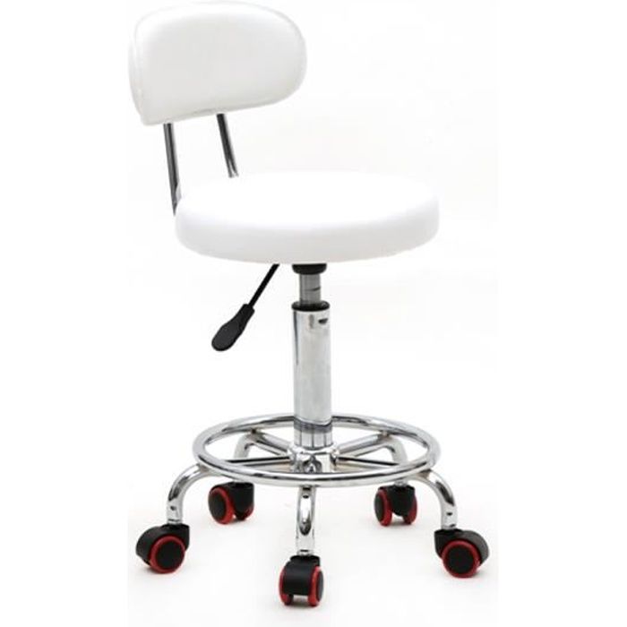 Tabouret de salon réglable -Tabouret de coiffeur avec dossier - bar Fauteuil à roulettes chaise tabouret pivotant-BLANC