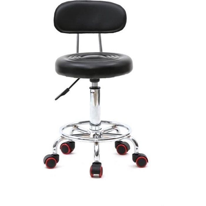Tabouret de salon réglable -Tabouret de coiffeur avec dossier - bar Fauteuil à roulettes chaise tabouret pivotant-noir