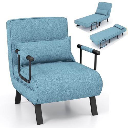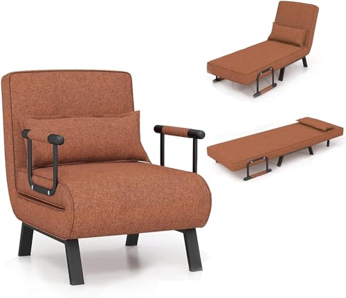 GOPLUS Canapé-lit Convertible, Fauteuil Convertible Lit, avec Dossier Réglable en 6 Positions, Oreiller Amovible, Cadre Métallique Robuste, Canapé-lit Pliable 1 Place, pour Salon