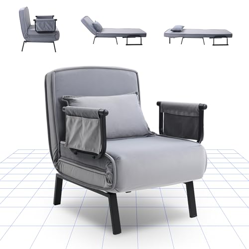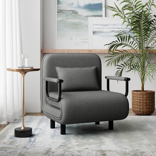 Xbro Fauteuil Chauffeuse 1 Place,3 en 1 Convertible Fauteuil-lit avec Fonction Lit avec Coussin et Sac, pour Petit Appartement (Gris foncé)