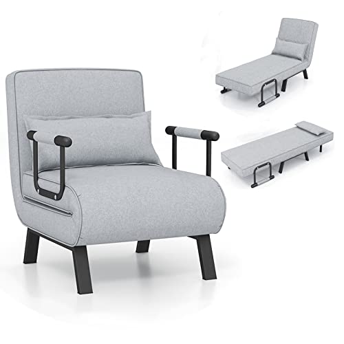 GOPLUS Canapé-lit Convertible, Fauteuil Convertible Lit, avec Dossier Réglable en 6 Positions, Oreiller Amovible, Cadre Métallique Robuste, Canapé-lit Pliable 1 Place, pour Salon (Gris Clair)