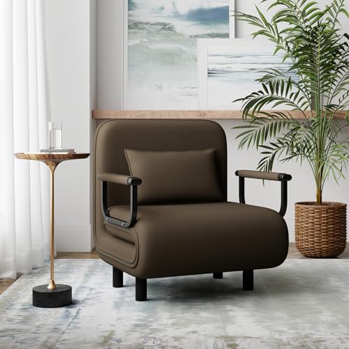 Fauteuil Lit Convertible 1 Place 4 en 1 Chauffeuse Canape - Dossier Réglable 5 Positions Coussin Inclus Fauteuil , Housse Amovible - Canapé-Lit d'Appoint pour Salon, Bureau et Invités(Marron)