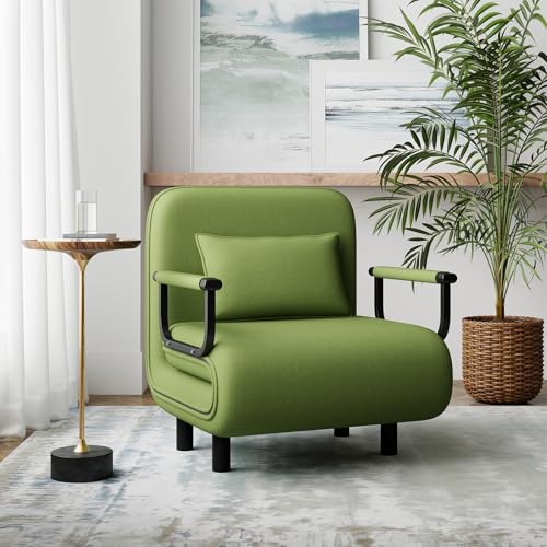 Fauteuil Lit Convertible 1 Place 4 en 1 Chauffeuse Canape - Dossier Réglable 5 Positions Coussin Inclus Fauteuil , Housse Amovible - Canapé-Lit d'Appoint pour Salon, Bureau et Invités(Vert gazon)