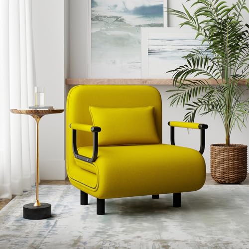 Fauteuil Lit Convertible 1 Place 4 en 1 Chauffeuse Canape - Dossier Réglable 5 Positions Coussin Inclus Fauteuil , Housse Amovible - Canapé-Lit d'Appoint pour Salon, Bureau et Invités(Jaune citron)