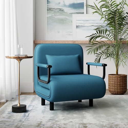 Fabulcozy Fauteuil Lit Convertible 1 Place 4 en 1 Chauffeuse Canape - Dossier Réglable 5 Positions Coussin Inclus Fauteuil, Housse Amovible - Canapé-Lit d'Appoint pour Salon, Bureau et Invités(Bleu)