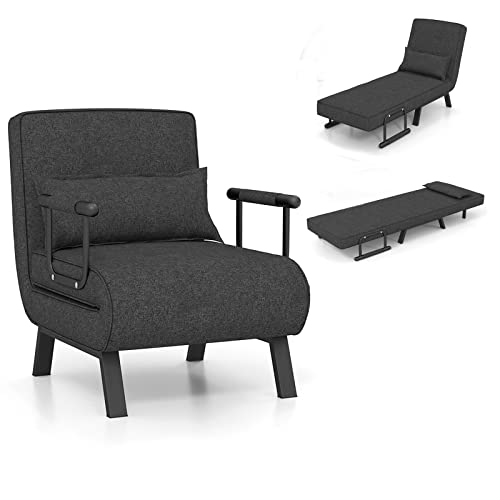 GOPLUS Canapé-lit Convertible, Fauteuil Convertible Lit, avec Dossier Réglable en 6 Positions, Oreiller Amovible, Cadre Métallique Robuste, Canapé-lit Pliable 1 Place, pour Salon (Noir Foncé)