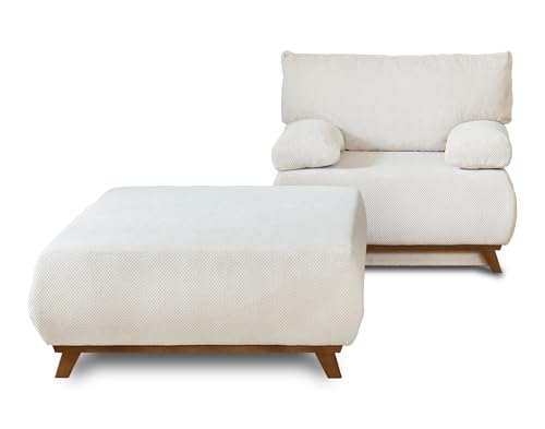HOMCOM Fauteuil lit Convertible chauffeuse Chaise Longue et Pouf 4 en 1 avec Dossier inclinable 5 Positions 1 Place - Coussin et Pochette Rangement Inclus - pour Salon, Chambre à Coucher - crème