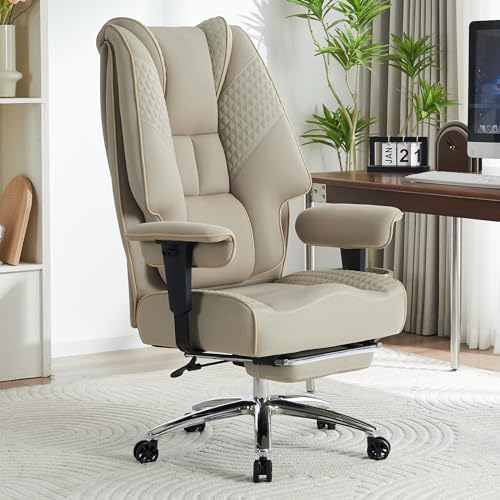 EXCEBET Fauteuil de Bureau Ergonomique Filet 180kg - Chaise Direction Grande Taille, Siège Ordinateur avec Assise Ressorts 14cm, Haut Dossier Respirant, Support Lombaire & Assise Large (Beige Clair