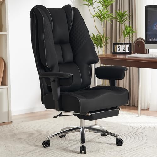 EXCEBET Fauteuil de Bureau Ergonomique Filet 180kg - Chaise Direction Grande Taille, Siège Ordinateur avec Assise Ressorts 14cm, Haut Dossier Respirant, Support Lombaire & Assise Large (Noire)