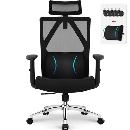 Aiidoits Chaise Bureau Ergonomique, Chaise de Bureau Inclinable Pivotant, Fauteuil de Bureau 150kg Confortable à roulettes, Appui-tête, Accoudoirs Ajustables et Support Lombaire