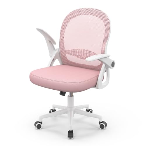 naspaluro Chaise de Bureau avec Accoudoir Relevable, Fauteuil de Bureau avec Soutien Lombaire, Siège Bureau avec Dossier Moyen de 45 cm (sans Repose-Pieds ni Appuie-tête, Rose)