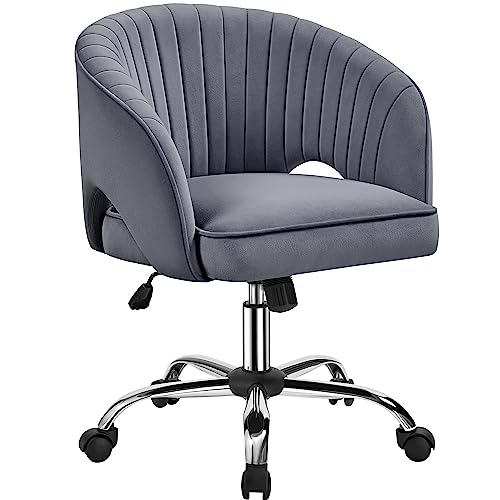 Yaheetech Fauteuil de Bureau en Velours avec Dossier Capitonné Arrondi Pivotant à roulettes Assise Réglable en Hauteur pour Chambre Bibliothèque Salon Gris Foncé