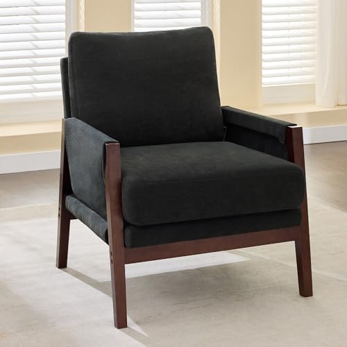 Fauteuil rembourré avec structure en bois et coussin confortable pour salon, bureau, chambre à coucher, chaise de lecture rembourrée