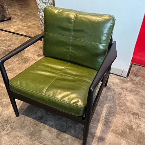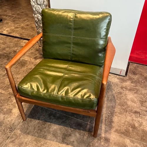 Fauteuil d'appoint moderne en cuir véritable avec cadre en bois, chaise de lecture confortable avec dossier confortable pour salon, chambre à coucher, salle d'attente
