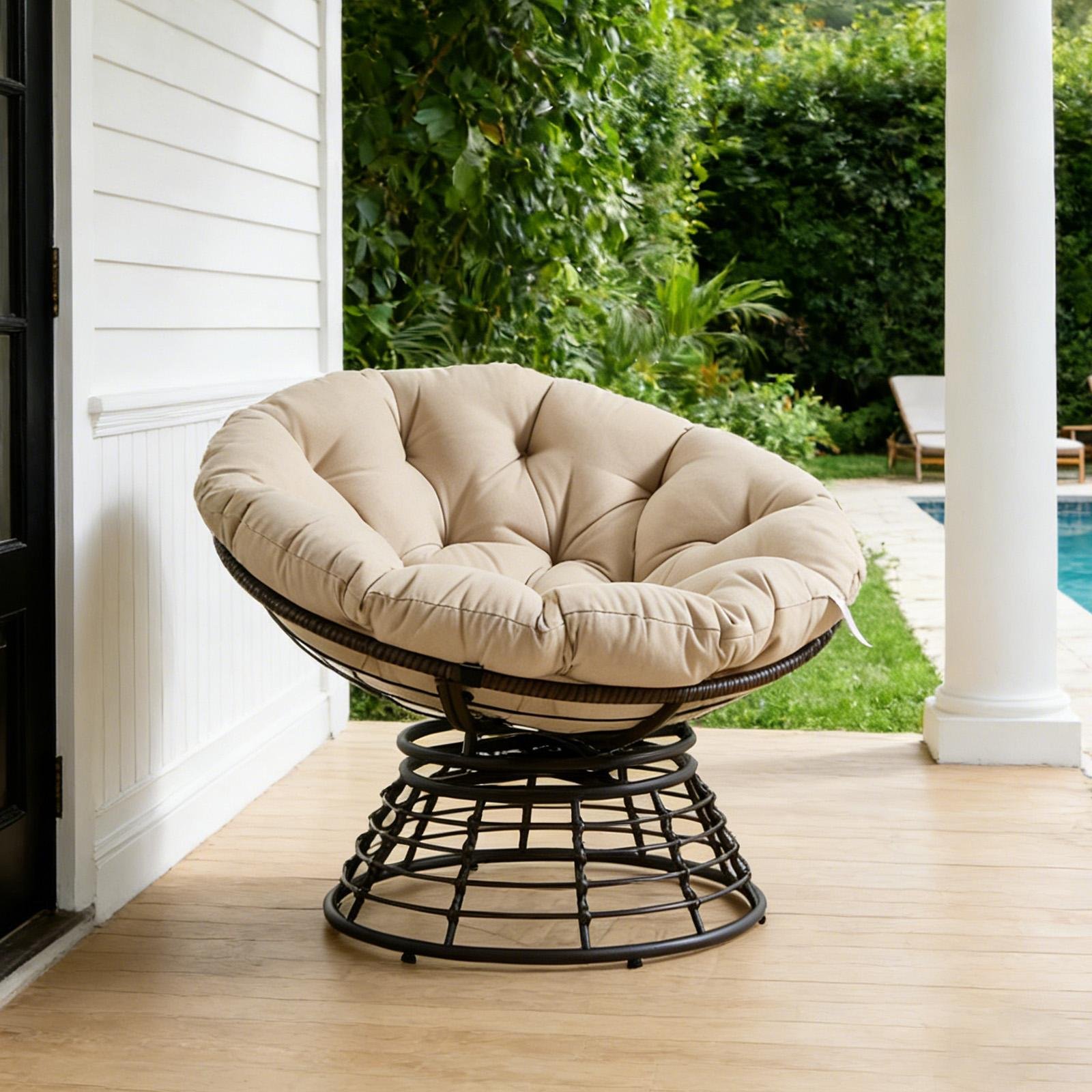 LVHOM Fauteuil Papa pivotant à 360°, fauteuil lounge avec coussins, fauteuil pivotant avec structure métallique, fauteuil de lecture confortable pour le salon et l'extérieur, 92 x 67 cm, beige
