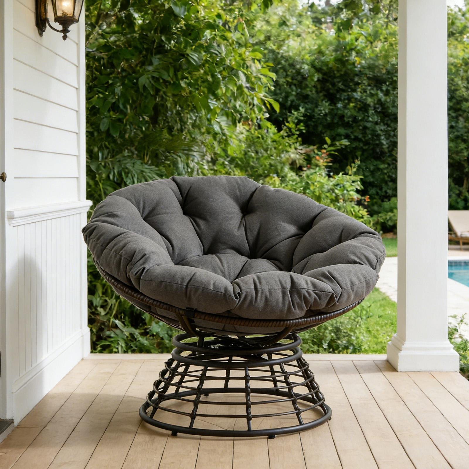 LVHOM Fauteuil Papa pivotant à 360°, fauteuil lounge avec coussins, fauteuil pivotant avec structure métallique, fauteuil de lecture confortable pour le salon et l'extérieur, 92 x 67 cm, gris