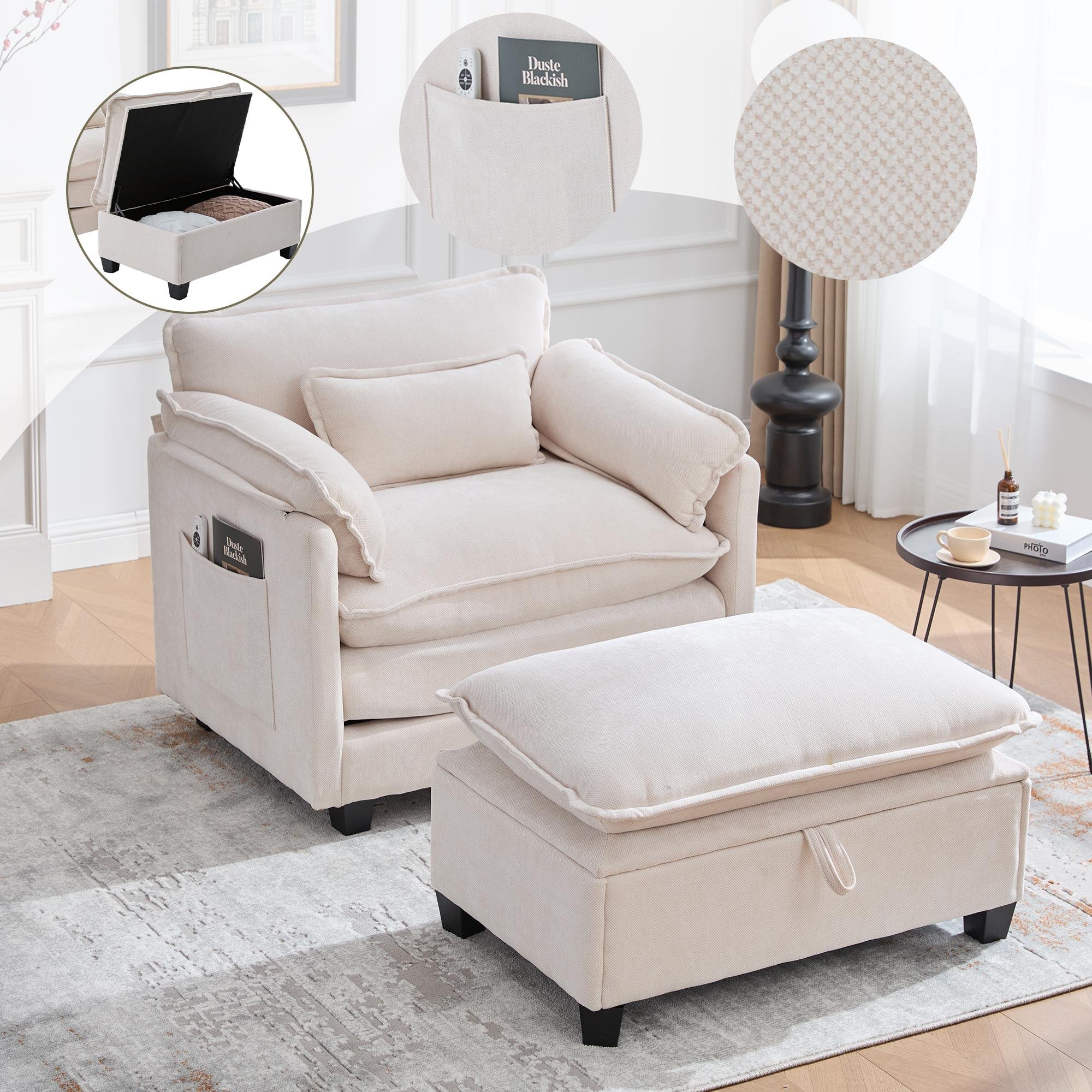 Sweiko Fauteuil moderne surdimensionné avec repose-pieds et pouf, fauteuil de détente en velours avec poches latérales et coussins, fauteuil de lecture confortable pour le salon, la chambre à coucher et l'appartement