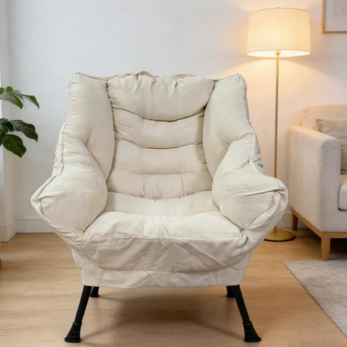 Zepneiy Chaise Longue Moderne,canapé inclinable 1 Place, Tissu Velours,Grand Fauteuil de Lecture Confortable,Convient pour Le Salon et la Chambre, Beige