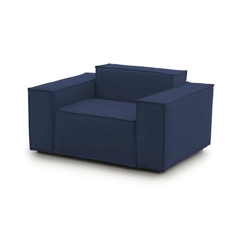 Talamo Italia - Fauteuil Alma, Canapé simple, Fauteuil de salon avec ouverture chariot en tissu rembourré, Coussins inclus, 100% Made in Italy, 85x90h85 cm, Bleu