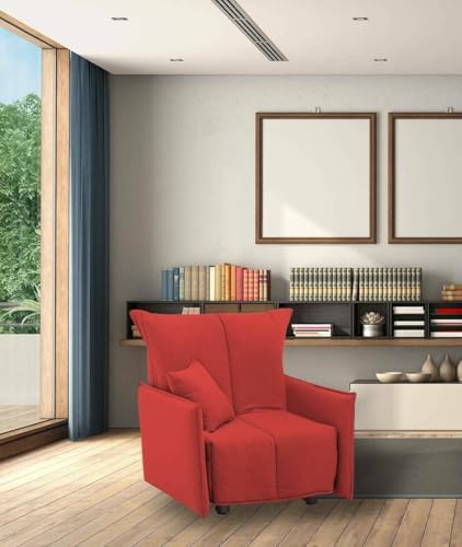 Talamo Italia - Fauteuil Almerinda, Canapé simple, Fauteuil de salon ouvrant sur chariot, Accoudoirs standards, 100% Made in Italy, 110x90h85 cm, Rouge